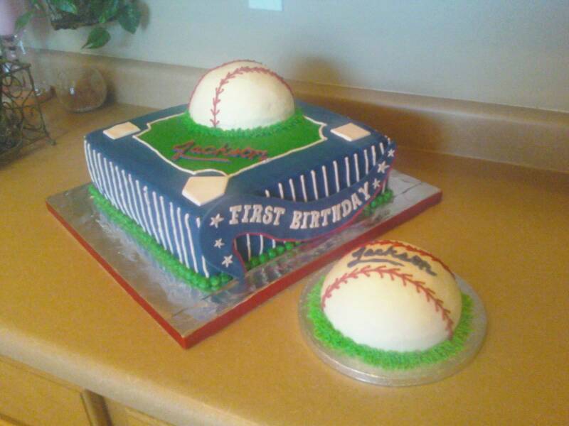 This cake was made for our good friends Matt and Val. Their son, Jackson was turning 1. His party was a baseball theme, so of course he had a baseball field and his own baseball to tear apart. We had a great time making this cake and we know Jackson loved it too